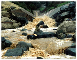 stream nearby. Jerry called the Sewer Emergency Hotline (619.515.3525) and alerted the San Diego Metropolitan Wastewater Department of the spill,