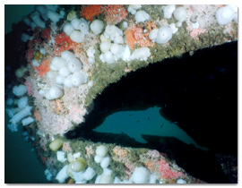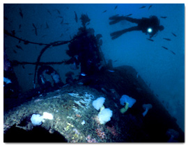 The HMCS Yukon is a 366 foot, 2,380 ton, Canadian Destroyer Escort. It lies in approximately 100 feet of water off Mission Beach, in the southern portion of the San Diego Underwater Recreation Area. She rests on her port side with an average minimum depth from bow to stern of about 70 feet. The exterior provides an excellent “reef” dive for advanced open water divers. There are numerous cutouts on the hull for easy entry and exit for qualified divers.
