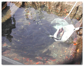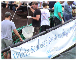 - Volunteers can participate in the fish release, where we scoop, count and release the white seabass directly into the bay.